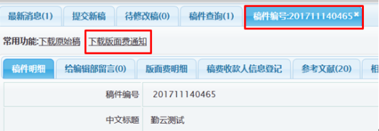 刊用通知下载方式:稿件查询——点击标题进去——常用功能——下载版面费通知,相关界面如下图所示。
